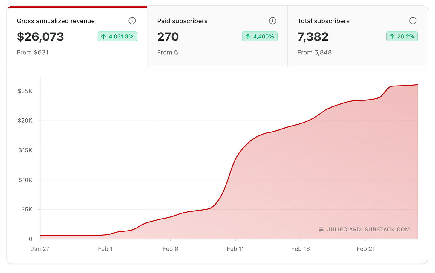 Substack has been an incredible way to not only get in front of new people and new audiences organically through my thought leadership — but it’s also allowed me to monetize very quickly. I generated $26,000 in my first month, which absolutely blows my mind. Because I have never made any money on Instagram or Facebook. In fact, I’ve only ever had to pay on those platforms.