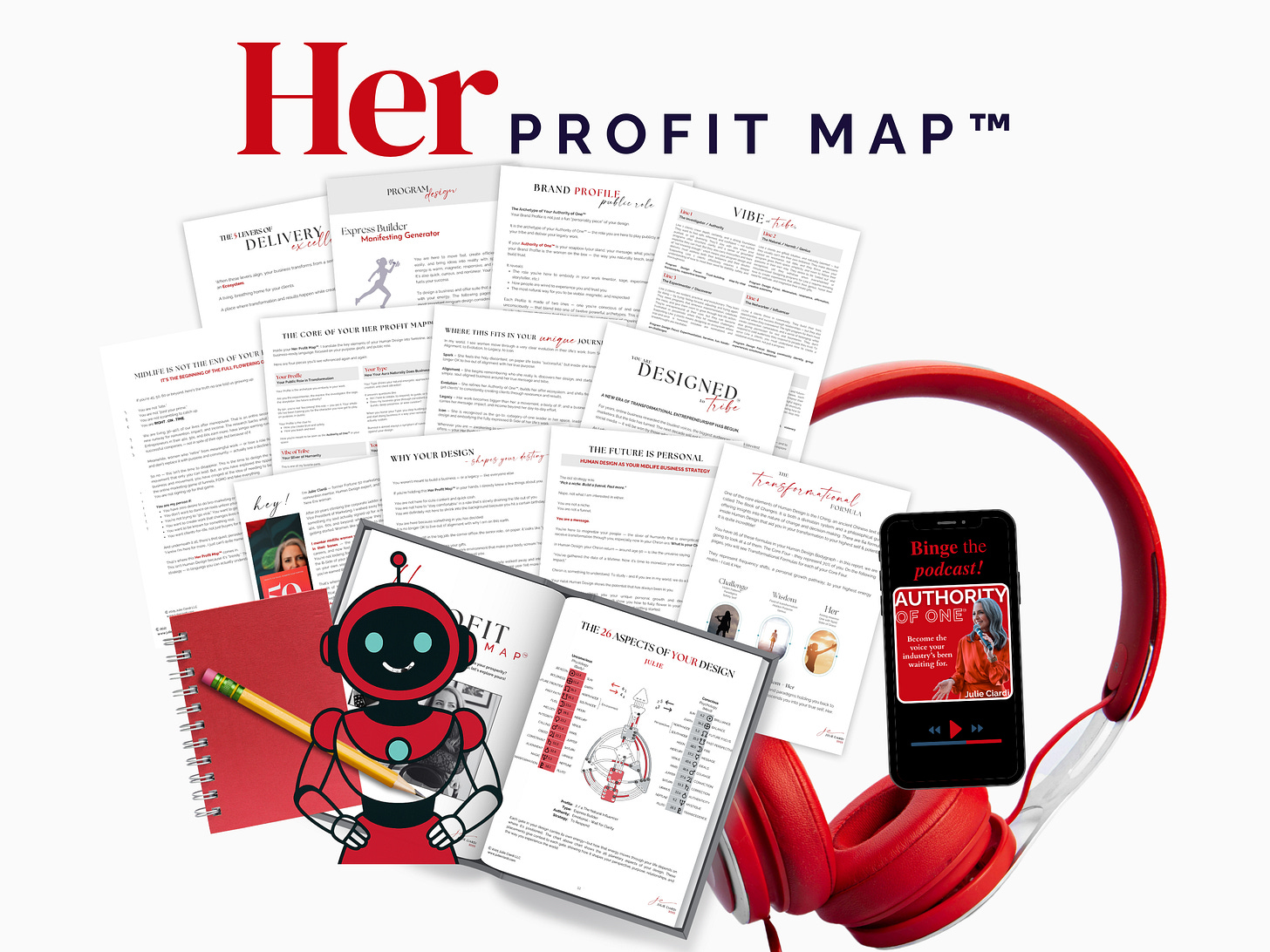 You can be a student and study your own design yourself. With the report, you also get an audio course and a custom GPT — my Julie Bot, which people are telling me is blowing their minds.